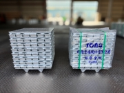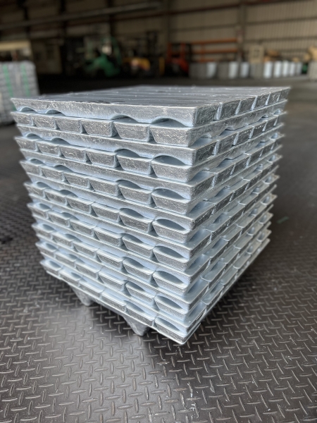 松隆鋅合金錠製成後,將之磅重並貼示條碼標籤,最後覆蓋PE包裝袋,再以塑鋼帶嚴密捆紮以防散落。